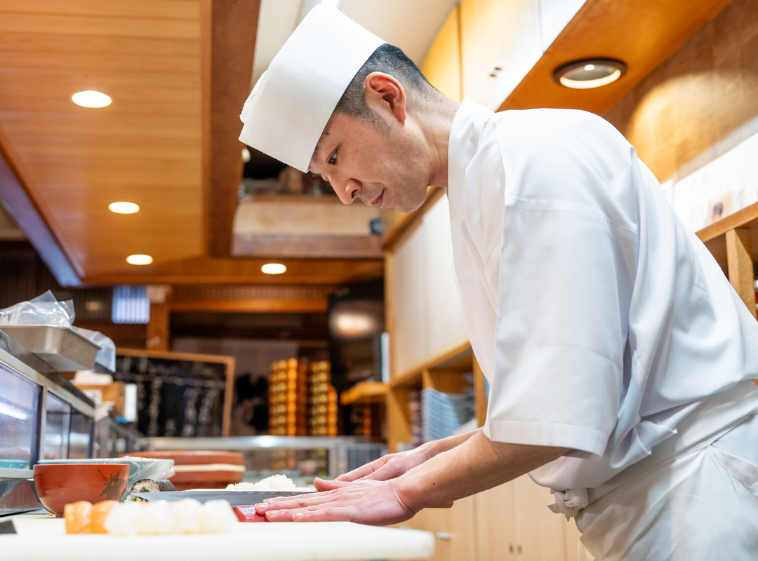 専門学校を卒業後、大阪の老舗寿司店で25年間修行を積みました。コロナをきっかけに故郷の佐渡へ戻ることになり、たまたま長三郎の求人に出会いました。先代の大将が非常に丁寧な仕事をされる方で、「佐渡にこれほどの寿司を出す人がいるのか」と感銘を受けたのが、入社を決めた理由です。