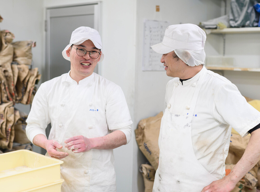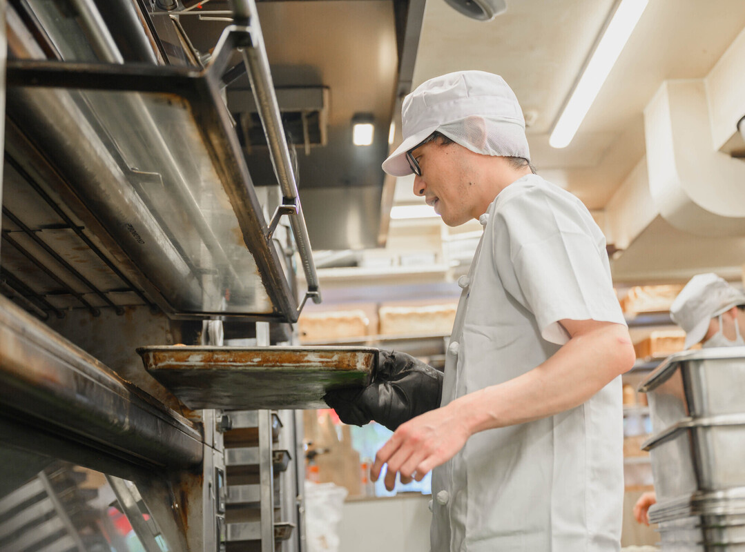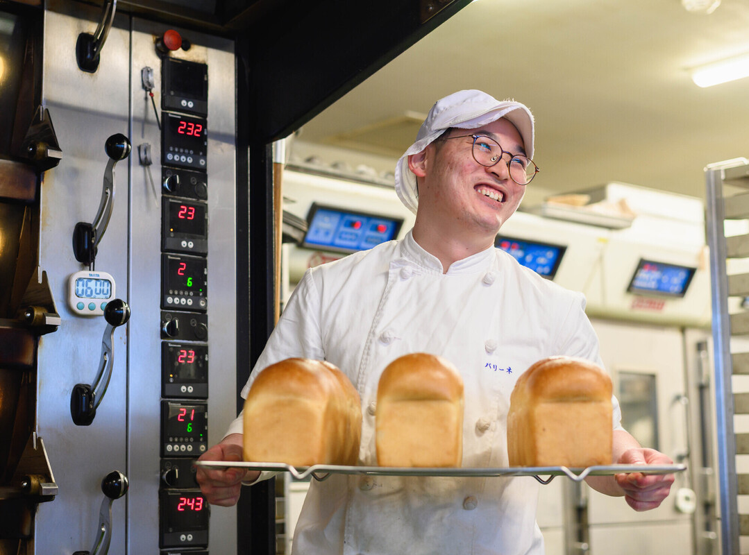 今はおもに仕込みを担当し、店頭に並ぶすべてのパンの生地づくりに関わっています。温度や湿度によって状態が大きく変わるパンづくりには、同じ工程でも毎回異なる判断が求められます。さらに当店では、さまざまな種類の食パンを一日に何度も焼き上げるため、水分量やこね時間を毎回細かく調整しなければなりません。思い通りの仕上がりを安定して出せるようになるまでは苦労もありましたが、その分、理想に近い状態で焼き上がったときには大きな達成感があります。焼き上がりの状態を見て、次の仕込みを調整し、常に改善を重ねていく。そんな一回一回の積み重ねが、技術の向上につながることを、日々実感しています。