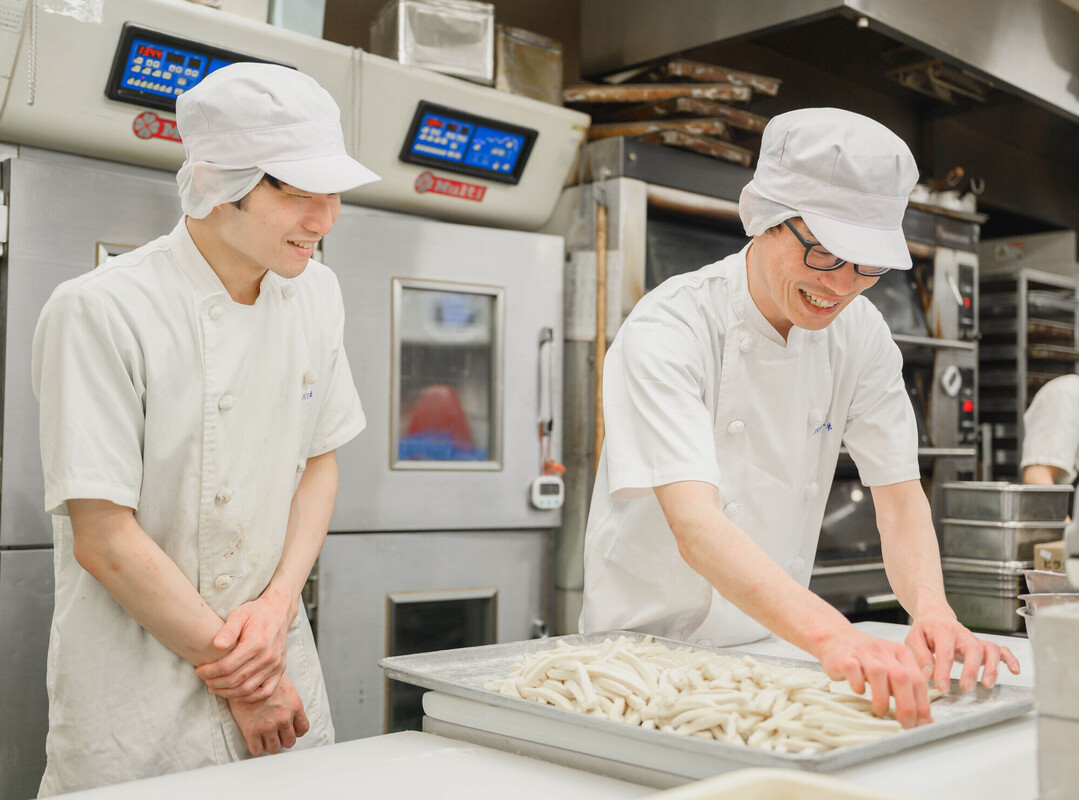現在は仕込みを担当し、製パンや菓子パンの種づくり、生地づくりなどを任せていただいています。想像していた以上に工程が多く、最初は正直びっくりしました。生地を練る作業一つとっても、ただ手を動かすだけではなく、次の計量や準備をどれだけ進められるかが重要で、体力だけでなく頭も使う仕事だと感じています。最初はどの状態が正解なのか分からず、先輩に確認しながら試行錯誤の日々でしたが、少しずつ「このくらいがちょうどいい」と感覚がつかめてきました。できることが増えていく実感が、仕事の面白さにつながっています。働きたいと思っていたこの環境に身を置き、日々挑戦できることが一番のやりがいです。