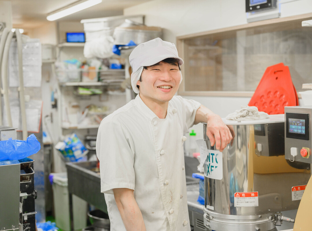 この会社に入って感じたのは、職場の人のあたたかさです。真剣に仕事へ向き合いながらも、周囲と声をかけ合って支え合う雰囲気がありますし、ミスをしたときも叱られて終わりではなく、どうすれば次に生かせるかを一緒に考えてもらえます。忙しい毎日ですが、先輩方の姿を見るにつれ、自分も早く力になりたいという気持ちが大きくなりました。成長は自分次第。頑張った分、周囲にも認めてもらえる環境だと思うので、まずは任された仕込みの仕事を一人で回せるようになることが今の目標です。これからも一歩ずつ経験を重ね、確実に成長していきたいと思っています。